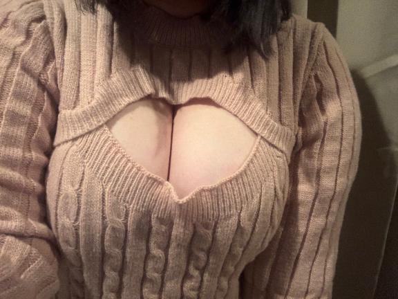 と言われた谷間全開えろニットを