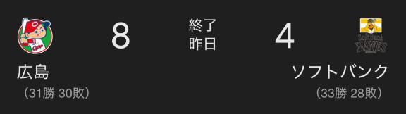 昨日のカープとソフトバンクの交流戦